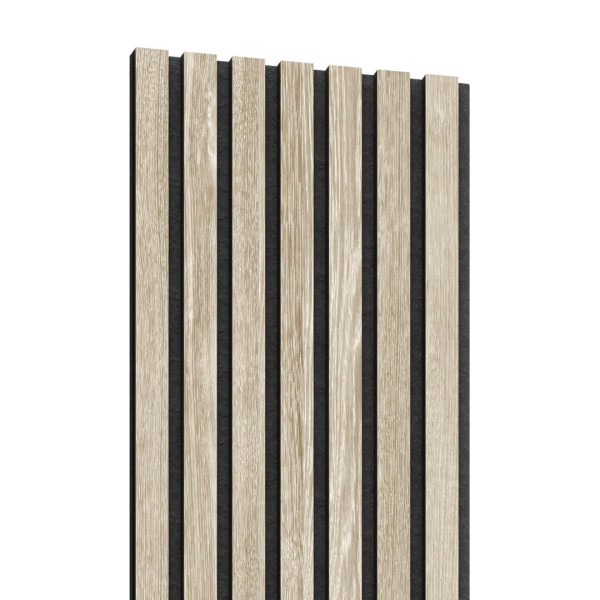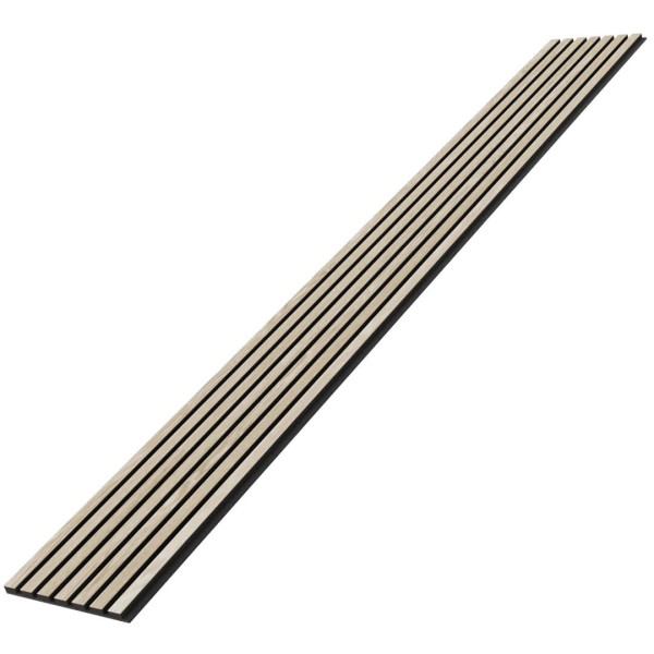 Die 60 x 240 cm großen, furnierten Akustikpaneele werden aus umweltfreundlichen Materialien hergestellt. Die Paneele haben akustische Eigenschaften und können in verschiedenen öffentlichen Räumen, z. B. Büros, sowie in Wohngebäuden verwendet werden. Sie können sowohl an Wänden als auch an Decken angebracht werden. Der 7 mm dicke Filz, der in schwarzer oder grauer Farbe erhältlich ist, wird durch Recycling von Kunststoffen gewonnen. Die Lamellen bestehen aus einseitig furnierten, 12 mm dicken schwarzen MDF-Leisten. Die MDF-Latte ist 2400 mm lang und 27 mm breit. Die schwarzen MDF-Latten sind unbehandelt furniert (nicht geölt) und in mehreren modischen Farben erhältlich. Der Abstand zwischen den Lamellen beträgt 13 mm.
