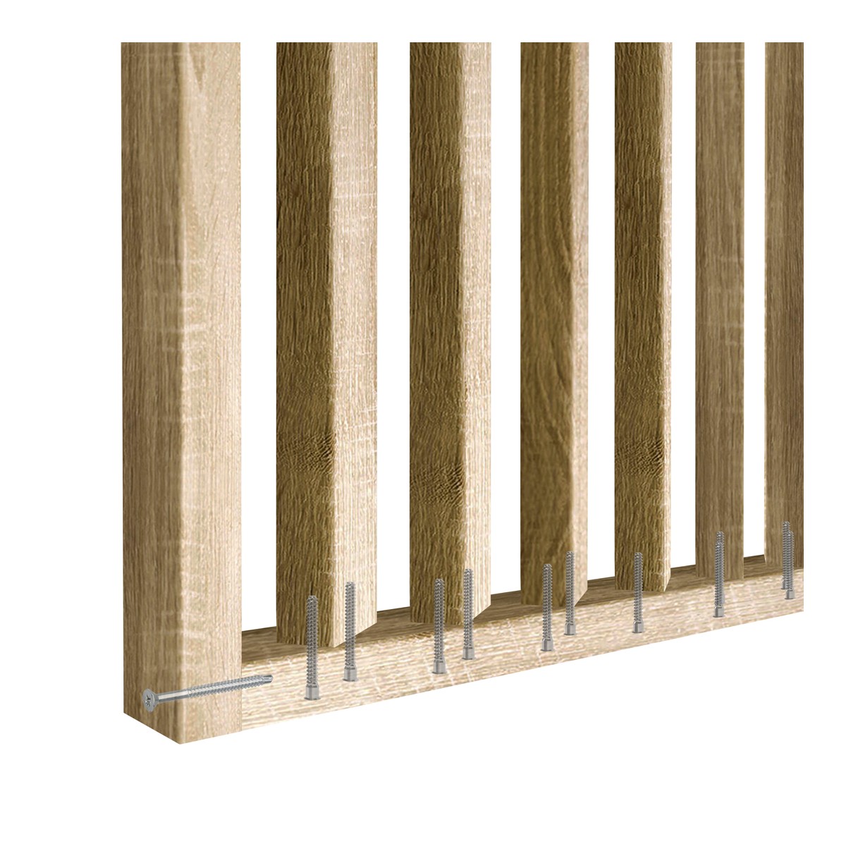Das Set aus Lamellenwänden mit einem Winkel von 55 Grad ist eine Komplettlösung für eine einzigartige Raumgestaltung. Das Set enthält montagefertige vertikale und horizontale Lamellen, die für die schräge Anordnung vorbereitet sind, sowie die erforderlichen Montageelemente und eine verständliche Anleitung. Dadurch ist die Montage schnell und intuitiv, auch für Personen ohne Vorkenntnisse.