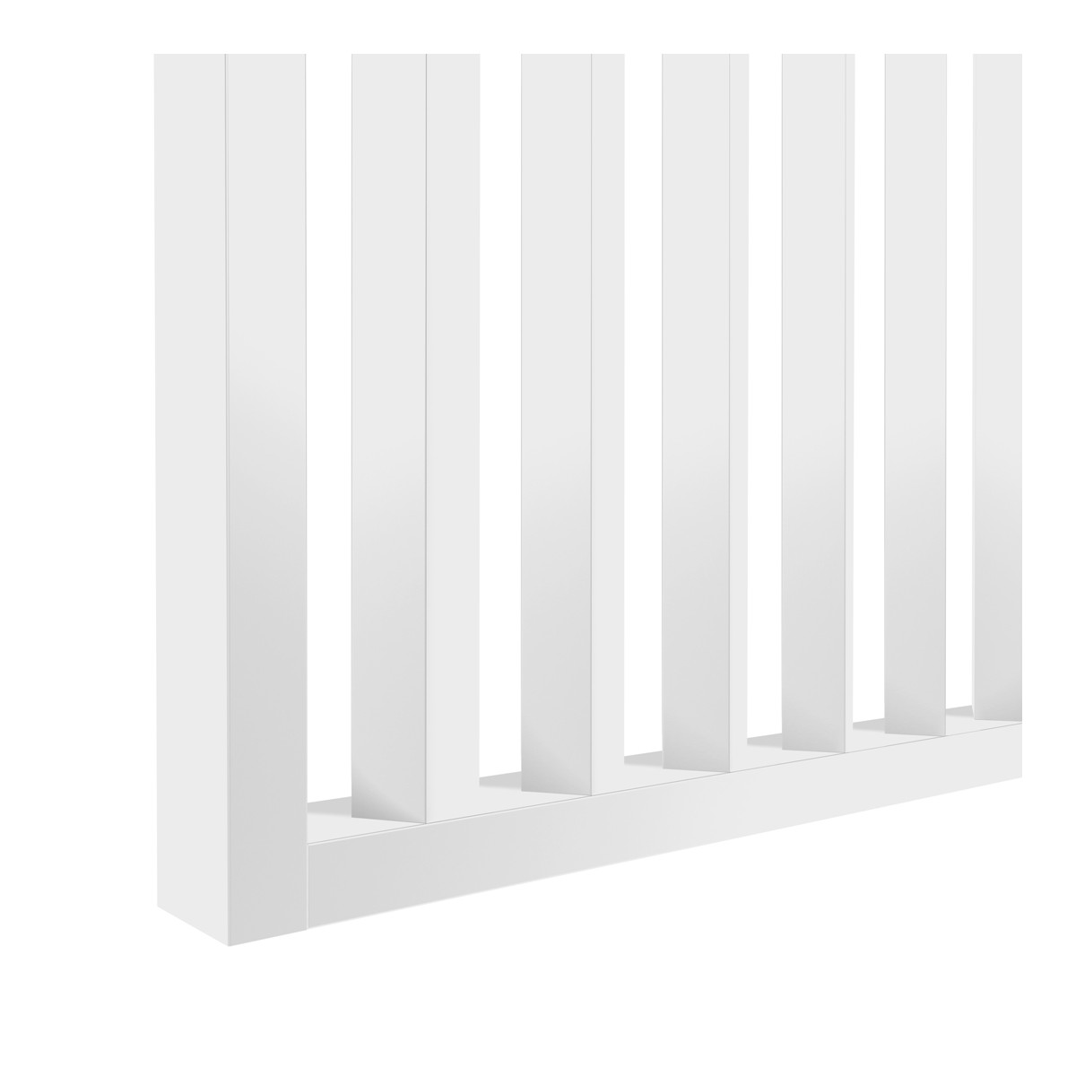 Die fertigen Wandpaneele aus schrägen Lamellen bestehen aus strapazierfähigem MDF, das Stabilität und ein lang anhaltendes ästhetisches Aussehen garantiert. Durch den geeigneten Abstand der Lamellen teilt die Wand den Raum effektiv und lässt gleichzeitig Licht ungehindert durch, wodurch der Raum optisch vergrößert und sein moderner Charakter betont wird.