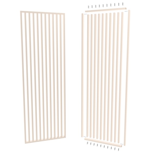 Az 55 fokos szögben elhelyezett lamellákból álló készlet egyedi elrendezés kialakításához nyújt teljes körű megoldást. A készlet tartalmazza a felszerelésre kész, ferde felszerelésre megfelelően előkészített függőleges és vízszintes lamellákat, a szükséges rögzítőelemeket és a világos használati utasítást. Ezáltal a felszerelés gyors és intuitív, még azok számára is, akiknek nincs előzetes tapasztalatuk.