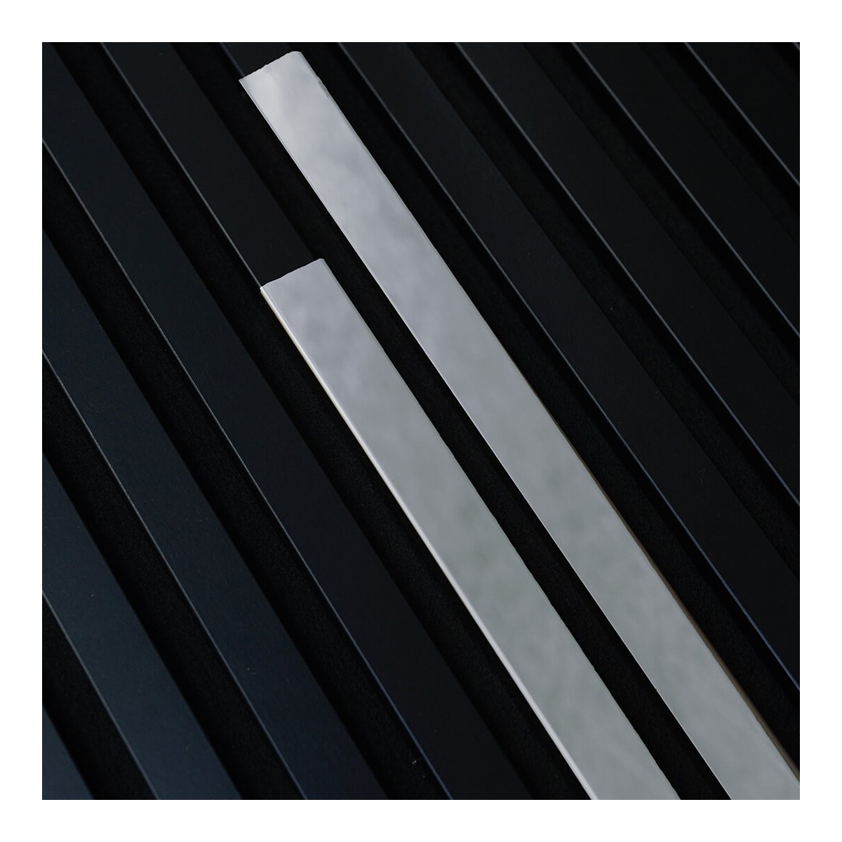 Ozdobna listwa stalowa na lamele to doskonała propozycja dla wszystkich miłośników niebanalnych elementów dekoracyjnych. Profil cechuje się nienagannym designem i wysoką jakością. Dekor został wykonany ze stali nierdzewnej SUS 304, dzięki czemu jest odporny na zmienność temperatur oraz działanie środków chemicznych.