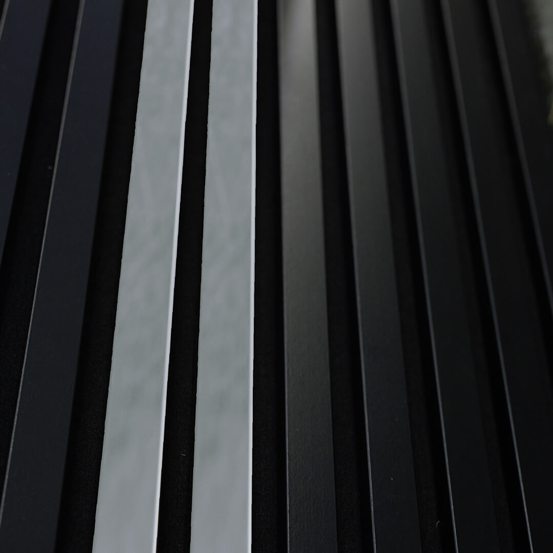 Nowoczesna technologia produkcji zapewnia trwały kolor, który nie ulega blaknięciu i ścieraniu. Ponadto zastosowanie cięcia laserowego gwarantuje precyzyjny wymiar produktu oraz gładkie krawędzie. Jednak listwa nierektyfikowana może być samodzielnie docinana na dowolny wymiar - najlepiej przy użyciu szlifierki kątowej, nożyc do metalu lub brzeszczotu. Optymalne wymiary profilu pozwalają na prosty montaż za pomocą nałożenia lub "wciśnięcia" go na lamelę. Aby uzyskać jak najdłuższy efekt wizualny, należy przecierać listwy miękką szmatką i wodą z mydłem - nie zaleca się szorowania ani tarcia!