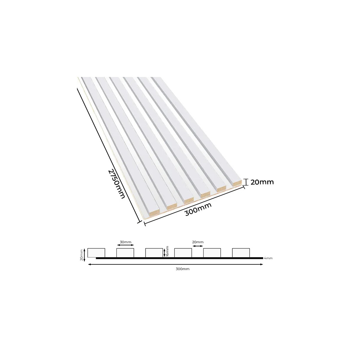Akustyczne panele ścienne to modny i praktyczny sposób na dekorację wnętrz! Dzięki płycie HDF o grubości 3mm i pionowym lamelom panele świetnie pochłaniają fale dźwiękowe eliminując pogłos w pomieszczeniu. Panele oprócz funkcji akustycznych pełnią także modną i nowoczesną dekorację ścian oraz sufitów w każdym wnętrzu. Panele ścienne występują w 15 różnych dekorach zamontowanych na czarnym lub białym panelu wykonanym z wytrzymałej i lekkiej płyty HDF. Sprawdź dostępny wariant białych lameli na dębowej płycie!