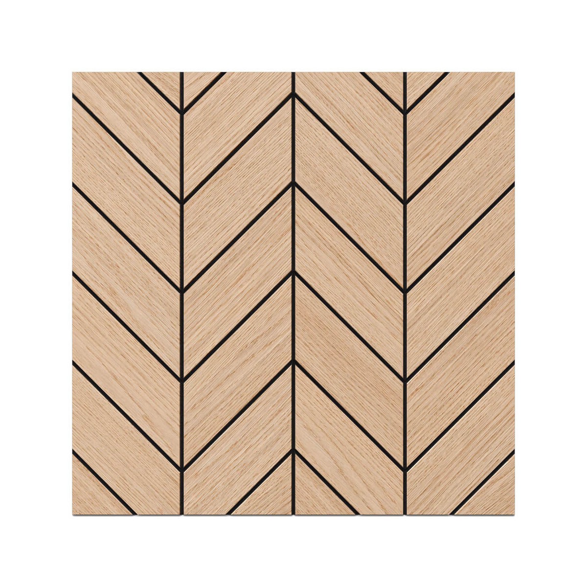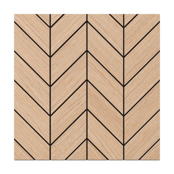 Panel PIRIN zachwyca klasycznym wzorem jodełki i szlachetnym fornirem dębowym. Czarna płyta MDF barwiona w masie, fornir surowy – wymaga olejowania. Format 50 × 50 cm, grubość 1,1 cm. Idealny wybór do salonu, sypialni czy biura. Możliwość montażu w pionie lub poziomie, również na suficie. Panel nie nadaje się do wnętrz o dużej wilgotności.