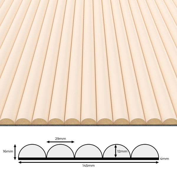 Ryflowane panele ścienne MDF to modny i nowoczesny sposób na udekorowanie wnętrz! Dzięki pionowym listwom zamontowanym na czarnym filcu o grubości 4mm panele posiadają właściwości dźwiękochłonne. Niezaprzeczalnym atutem paneli ryflowanych MDF są ich walory estetyczne, dzięki którym są modną i nowoczesną dekoracją ścian oraz sufitów w każdym wnętrzu. Panele ryflowane występują w 8 modnych dekorach zamontowanych na czarnym filcu. Między listwami nie ma przerw, więc czarny filc nie jest widoczny po zamontowaniu.