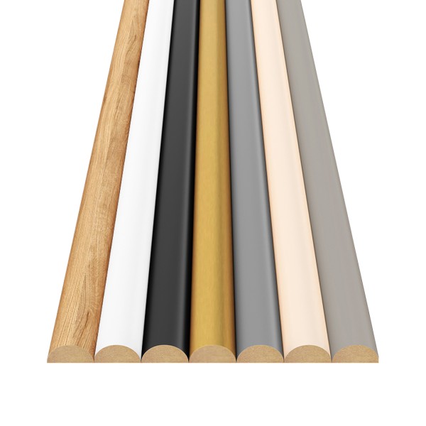Nowoczesna i modna dekoracja ścian i sufitów. Półwałki dekoracyjne MDF to idealna alternatywa dla klasycznych lameli ściennych! Listwy występują w 7 różnych dekorach. Zamów pojedynczą próbkę lub zestaw i wybierz kolor dla siebie! Półwałki występują w następujących kolorach: dąb naturalny, dąb wotan, czarny mat, biały mat, złoty, szary, beżowy, kaszmir.