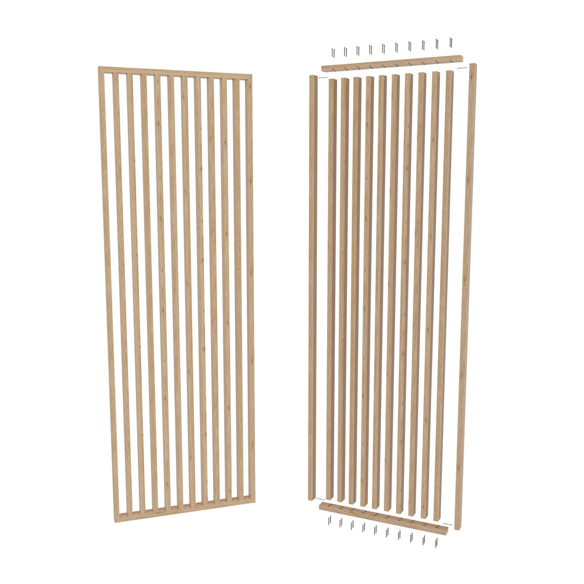 Chcesz stworzyć przytulny kącik lub wyraźnie zaznaczyć podziały w otwartej przestrzeni? Ścianki działowe z lameli montowanych pod kątem 55 stopni to nowoczesne rozwiązanie dla osób ceniących oryginalny design i funkcjonalność. Skośne ułożenie lameli nadaje wnętrzu dynamiczny charakter i sprawia, że aranżacja nabiera lekkości oraz nowoczesnego wyrazu. Dzięki modułowej konstrukcji, ściankę łatwo dopasujesz do każdej przestrzeni - zarówno w mieszkaniu, jak i w biurze.