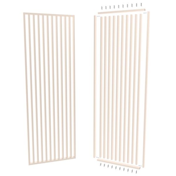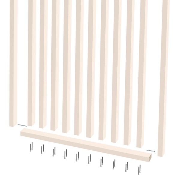 Un set de pereți lamelari noștri este tot ce aveți nevoie pentru a crea un aranjament unic. Setul include lamelare verticale și orizontale gata de asamblare, componentele de montare necesare și instrucțiuni. Acest lucru face ca asamblarea să fie rapidă și ușoară, chiar și pentru cei fără experiență.