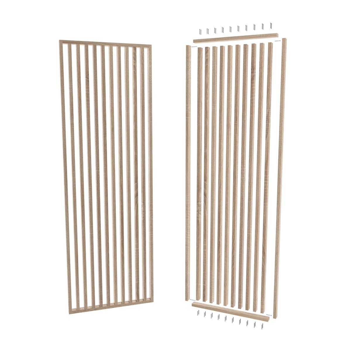 Pereții ajurați gata fabricați, realizați din lamele înclinate, sunt confecționați din MDF rezistent, care garantează stabilitate și aspect estetic pentru o lungă perioadă de timp. Distanța adecvată dintre lamele face ca peretele să împartă eficient spațiul, permițând în același timp luminii să circule liber, mărind vizual camera și subliniind caracterul său modern.